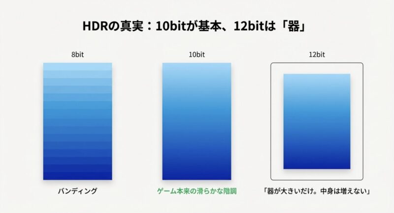 これが「HDRは10bitが基本」と言われる理由のひとつです。