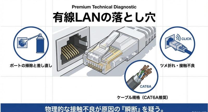 なぜなら、無線みたいに見えない要素が少なくて、試せる手順がハッキリしてるからです。
