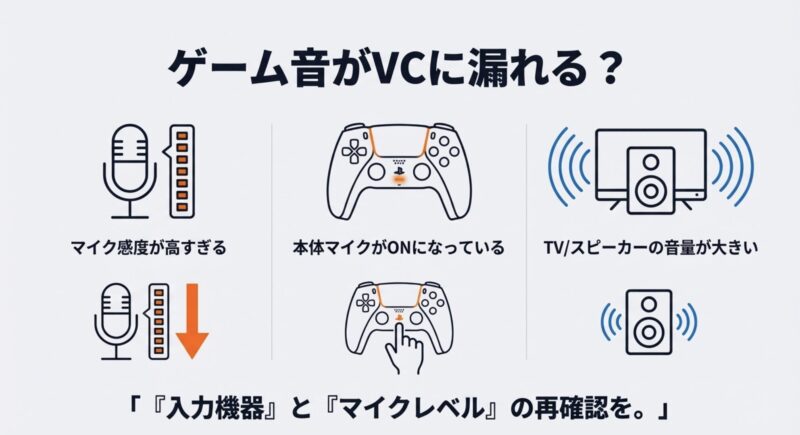 - 入力機器の確認:PS5のマイク入力が「ヘッドセット」になっているか、内蔵マイクが生きていないか