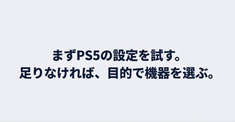 いきなり機材へ行くより、まずPS5単体で“どう分かれるのか”を理解してから買う方が、失敗が減ります。