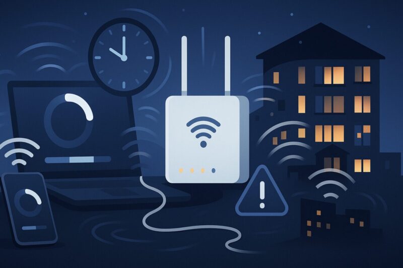 これはWi-Fi接続が不安定になる主要な原因の一つで、特に夜間などみんながWi-Fiを使い始める時間帯に起こりやすいですね。