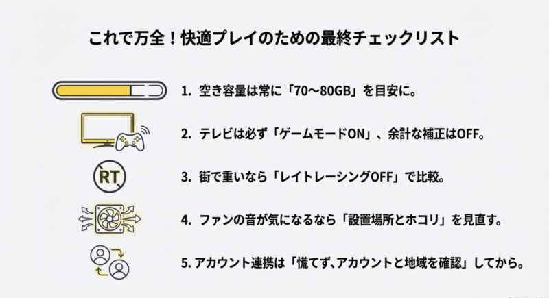 この記事では、インストール容量の目安から、アップデートで増える理由、カクつきやロードの重さの原因、そしてあなたの環境でできる対策まで、ひとつずつ噛み砕いてまとめます。