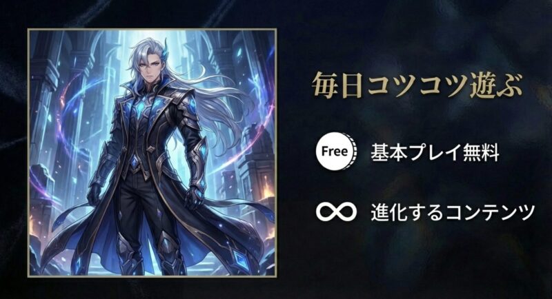 | FF7EC / 幻影戦争 | 日課・ルーチン | 終わりなし | 【毎日コツコツ】 1日1回のログインやデイリーミッション消化が重要。生活のリズムにゲームを組み込みたい人向け。 |