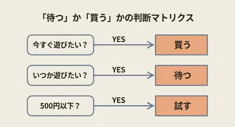 • いつか遊ぶ:大型セールまで待つ(年末年始・夏・ブラックフライデーを目安)