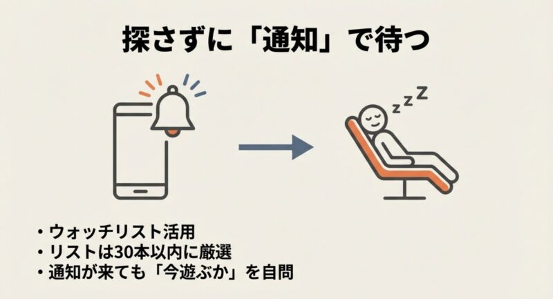 通知が来ても買わなかったゲームは、候補から一回外します。理由は「今の自分に必要じゃなかった」可能性が高いから。