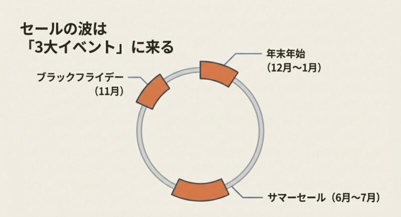 セールいつ来るのかは、ざっくり“季節イベント”で当たりがつきます。