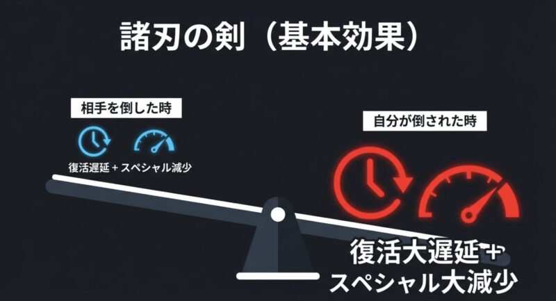 数値だけを見ると強く見えますが、実戦では自分側のデメリットもかなり大きいです。