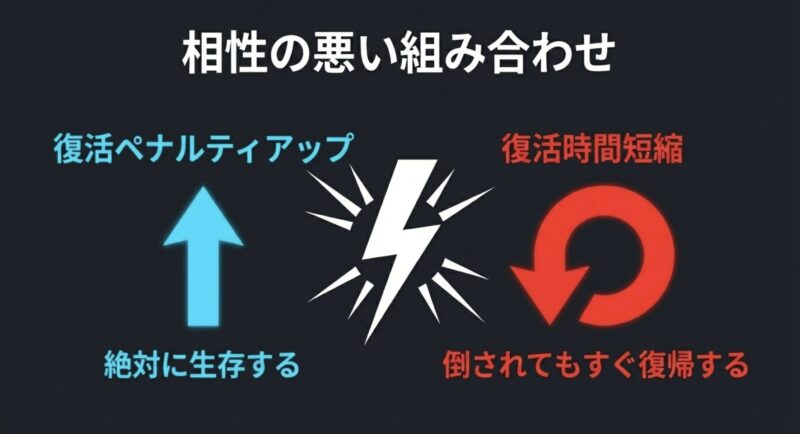 逆に、前線でデスが増えやすい、復帰のテンポやスペシャル回しが勝ち筋になっているなら、無理に採用しないほうがいい場面も多いです。