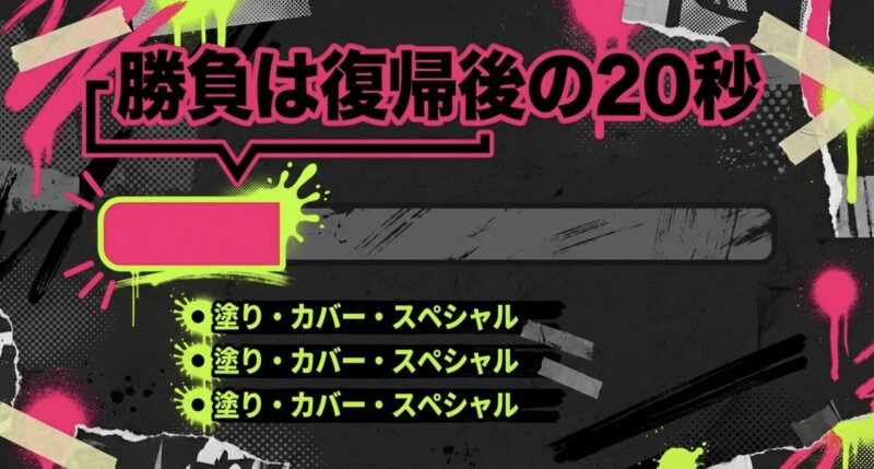 - 復帰直後の20秒で、塗り・カバー・スペシャルのどれかを必ずやれているか
