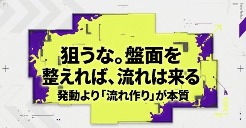 だからこそ、イカフロー状態の発動前の準備行動(塗り・カバー・位置取り)がより重要になります。