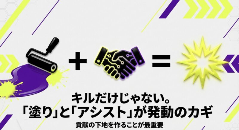 - 発動は連キルだけじゃない:塗りやアシストの積み重ねが効く